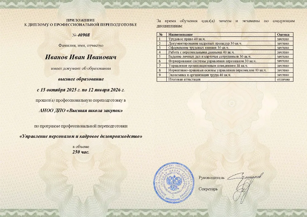 Профессиональная переподготовка, 250 академических часов, 14 модулей: основы административного права и кадрового делопроизводства, документирование трудовых отношений, ведение трудовых книжек, работа с персональными данными и личными делами работников. Онлайн-обучение в в Новосибирске с итоговой аттестацией.